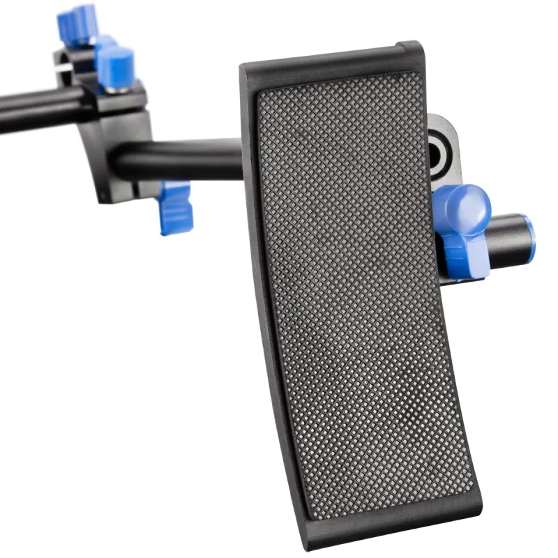The modular setup not only makes the use for left-handed and right-handed persons possible, it is also ideal for adjusting the rig individually to your height and fields of use. You can attach various accessories such as microphones, LED lights or a follow focus system with additional clamps and rods with a diameter of 15mm on the rig. Additionally, the 1/4 inch thread on the hand grip can be used to mount the shoulder rig or the adapter unit onto a tripod.