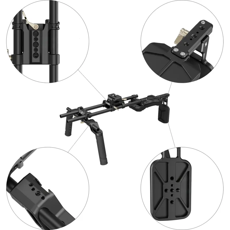Plecu spilvens un aizmugurējais spilvens ir aprīkoti ar iebūvētiem 1/4-20 vītņu caurumiem un 1/4-20 novietojuma caurumiem, ļaujot paplašināt aksesuārus, piemēram, V-montāžas akumulatorus, pretsvērtnes un citus pielikumus.