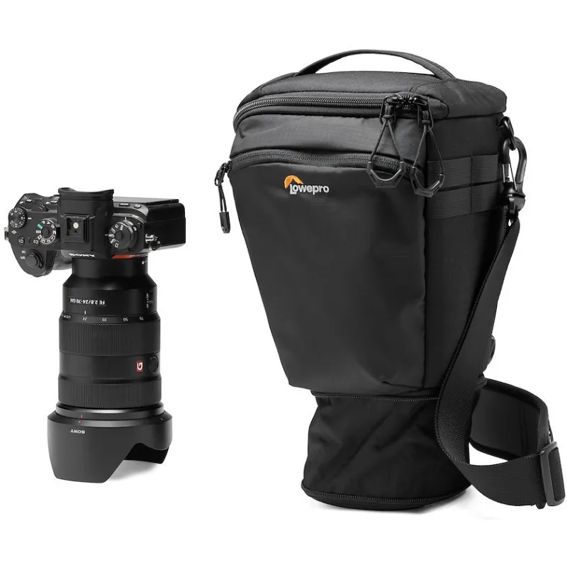Slim TopLoader ir izstrādāts pilna kadra kamerām ar 24-70mm F2.8 objektīvu, iekļaujot vietu objektīva vāciņam. Tas ir saderīgs ar SlipLock aksesuāriem.