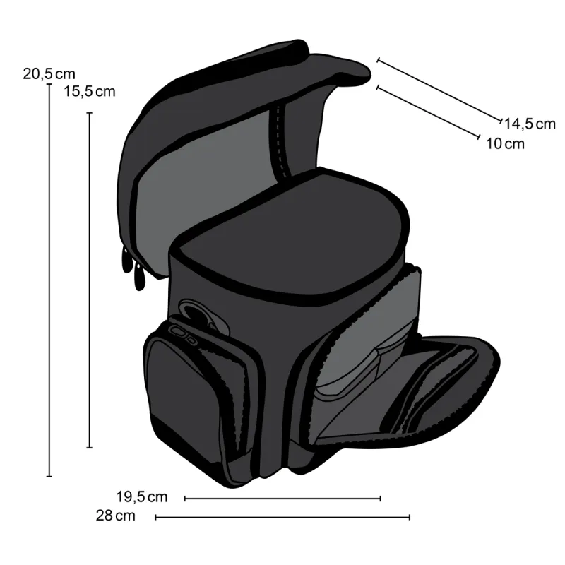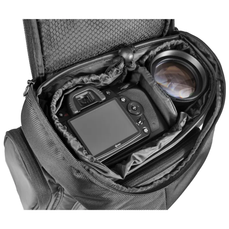 Mantona Neolit Photo Bag I apvieno visas kompaktās kameras somas priekšrocības ar klasisku, cēlu dizainu. Papildus DSLR kamerai ar pievienotu 18–55 mm objektīvu šajā kameras somā ir pietiekami daudz vietas citam objektīvam vai zibspuldzei. Ātra piekļuve caur somas augšdaļu, vienkārši atverot rāvējslēdzēju. Tādā veidā fotoaparāts vienmēr ir ātri pie rokas.