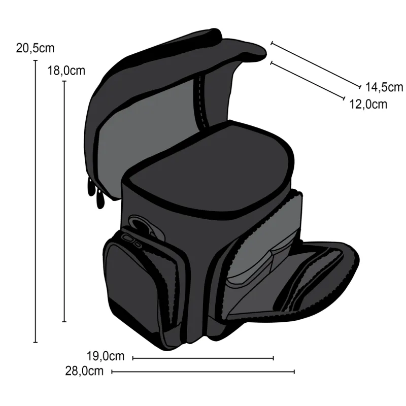 Many compartments and attached bags provide stowage space for small camera accessories like filters or memory cards. The handy camera bag is closed by a hinged cover with clip. The mantona photo bag comes with a carrying handle as well as an ergonomically shaped, longitudinally adjustable carrier belt with extra padding for the shoulder. The belt can be taken off when required.