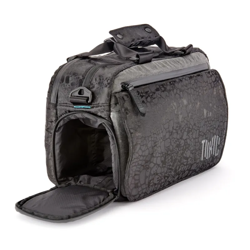 Toxic Wraith Camera Messenger M Water Resistant "Frog" Pocket Onyx Wraith ir plecu soma fotogrāfiem, kas dodas ceļā un kam nepieciešama ātra piekļuve saviem rīkiem. Iekšējo organizāciju ir izstrādājuši fotogrāfi, tāpēc tajā ir vieta jūsu nepieciešamajam aprīkojumam - papildu objektīviem, zibspuldzēm, filtriem, mikrofoniem, monitoriem, un starpsienas var pārvietot, lai tās cieši pieguļ jūsu aprīkojumam. Organizatoru paradīze Wraith ir priekšējais atloks, kas aizsargā divus glabāšanas nodalījumus ar pretplūsmas rāvējslēdzējiem, lai novērstu piekļuvi no sāniem vai zādzību. Tur ir arī slēpta kabatiņa tādām vērtīgām lietām kā nauda un pases. Wraith aiz priekšējā atloka ir planšetdatora nodalījums, kas ir pieejams, neatverot somu, ir paslēpts zem diskrēta YKK rāvējslēdzēja. Aizmugurē ir klēpjdatora nodalījums ar YKK Aquaguard rāvējslēdzēju ar piekļuvi stūros. Aizmugurējā panelī ir arī neliels nodalījums piederumiem un bagāžas siksna piestiprināšanai pie čemodāna vai ritināmās somas. Somas sānos ir tīklveida kabata ūdens pudelei vai flakonam. Wraith ir ūdensizturīgs un hermētisks "Frog" nodalījums, kas ir pieejams no somas ārpuses un kurā var droši glabāt slapjus priekšmetus atsevišķi no vērtīgās elektronikas. To var izmantot arī kameras drošai glabāšanai nelabvēlīgos laikapstākļos. Ja tas nav nepieciešams, salociet somas iekšpusē esošo iekšējo sadalītāju, lai iegūtu papildu uzglabāšanas vietu. Visas D-veida gredzeni un aparatūra ir Duralock neilona, un tie ir izstrādāti tā, lai izturētu ikdienas profesionālās lietošanas grūtības. Divvirzienu siksna Plecu siksna ir izgatavota no austas neilona siksnas, gluda un taustāma, ar viegli regulējamu garumu un pabeigta ar noņemamu plecu daļu, ar gaisa sietu un silikona rokturiem. Jūs varat izvēlēties stiprinājuma punktus sānos vai aizmugurē, kas ļauj somu izmantot kā kurjeru vai siksnu.