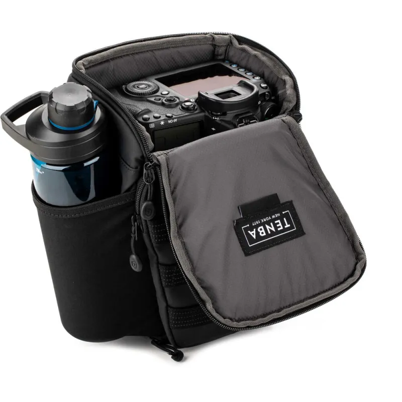 Melnais Axis V2 augšējās ielādes kameru soma no Tenba ir ar 4L jaudu un ir lielisks palīgs profesionāliem satura veidotājiem, fotogrāfiem un filmu veidotājiem. Tai ir ērta augšējā ielāde un tā ir pirmā soma, kas ietver slēptu neoprēna kabatu Apple AirTag vai Tile Bluetooth izsekošanai.