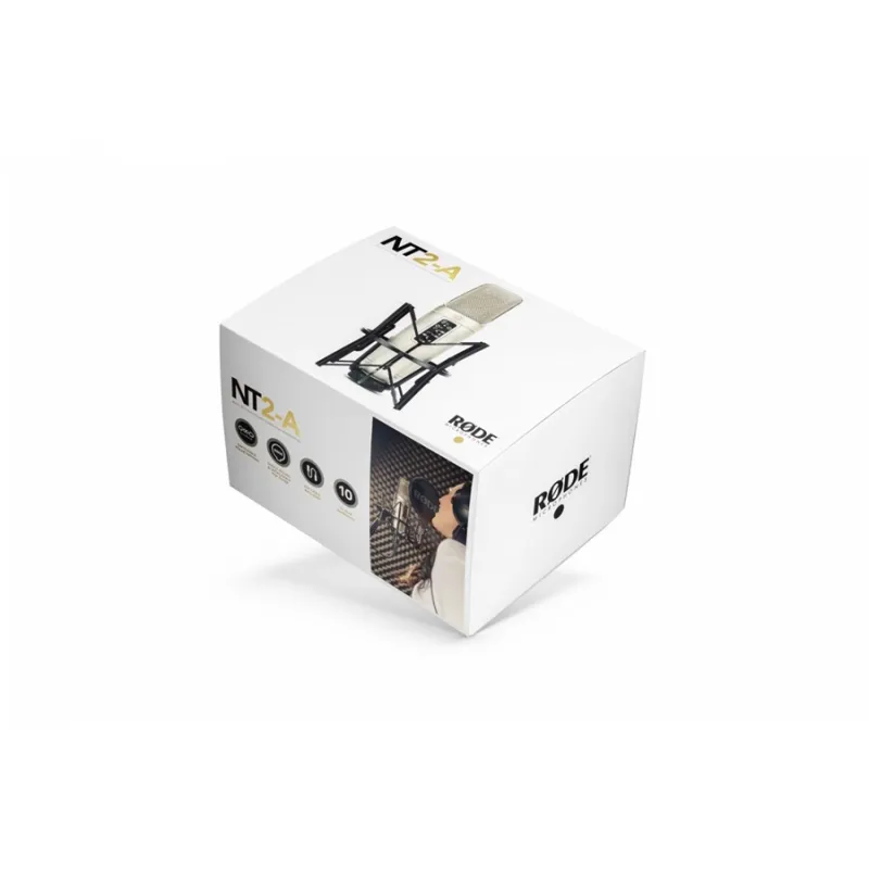 RODE NT2-A studijas komplekts ir komplekts, kurā ietilpst NT2-A profesionālais lieljaudas studijas mikrofons ar 1" kapsulu, trieciena stiprinājums ar RODE SM6 pop filtru, 6 m XLR kabelis, pārnēsāšanas futrālis un DVD ar instrukcijām.
