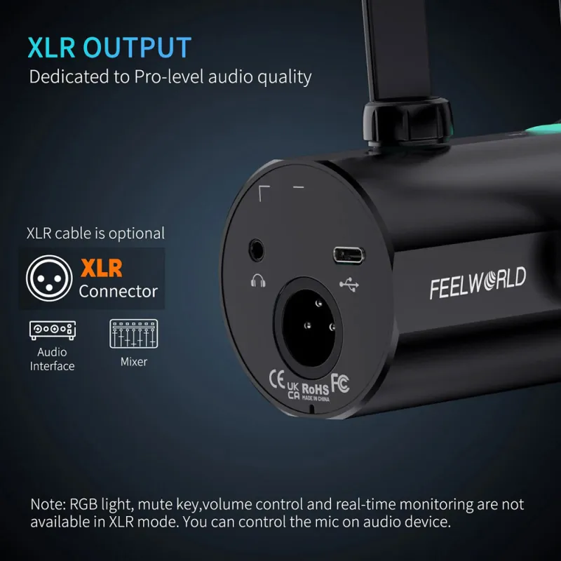 Feelworld PM1 Microphone ir ideāla izvēle podkāstu veidotājiem, spēlētājiem un balss aktieriem. Tā stilīgais un kompaktais dizains nodrošina dabīgu, skaidru skaņu ar daudzpusīgu funkcionalitāti, piedāvājot gan XLR, gan USB C savienojamību.