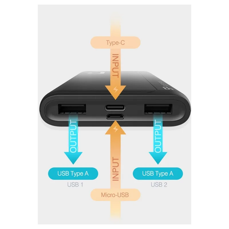 The QP55 is equipped with dual input power – USB-C and Lightning. Silicon Power battery banks are distinguished by a type C input. The choice of two inputs means greater convenience. Furthermore, it is sustainable as the use of Type-C ports on devices is on the rise. Lightning input is perfect for Apple users.