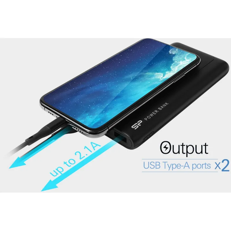 The powerful Silicon Power QP55 power bank is equipped with a super lithium battery and is compatible with all devices that can be charged via USB. The 10,000 mAh capacity provides 2-4 full charge cycles on almost any smartphone.