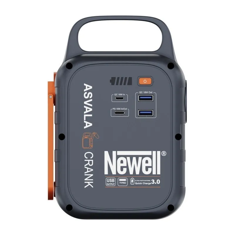 Newell Asvala Crank ir 22500 mAh jaudas stacija, kas izceļas ar kompakto izmēru un virs vidējām funkcionalitātēm. Šis unikālais jaudas bankas risinājums ir ideāls izvēle āra entuziastiem un cilvēkiem, kuri daudz laika pavada ārpus telpām. Tās raksturīgā iezīme ir unikālā manuālā uzlādes sviras sistēma. Pagriežot to, jūs varat paši ģenerēt elektrību ārkārtas situācijā.