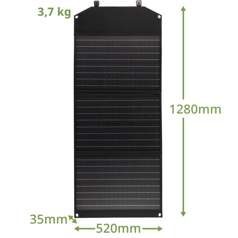 Izturīgi, putekļus un ūdeni atgrūdoši materiāli Izturīgais Cordura audums ir īpaši izturīgs pret plīsumiem, bet joprojām elastīgs. Tas aizsargā vērtīgo saules paneli no bojājumiem un nodrošina nepieciešamo stabilitāti lietošanas laikā. Saules panelis ir putekļus un ūdeni atgrūdošs, tas iztur lielāko daļu laikapstākļu un ir jūsu ideālais sabiedrotais gandrīz visām āra aktivitātēm. Tomēr saules paneli nedrīkst pakļaut tiešam lietum vai pārmērīgam mitrumam.