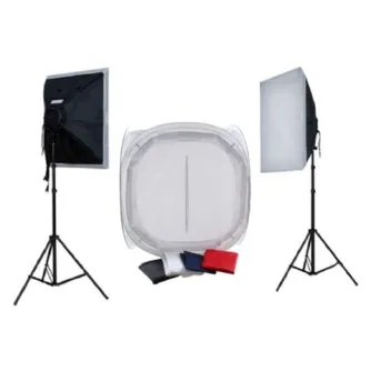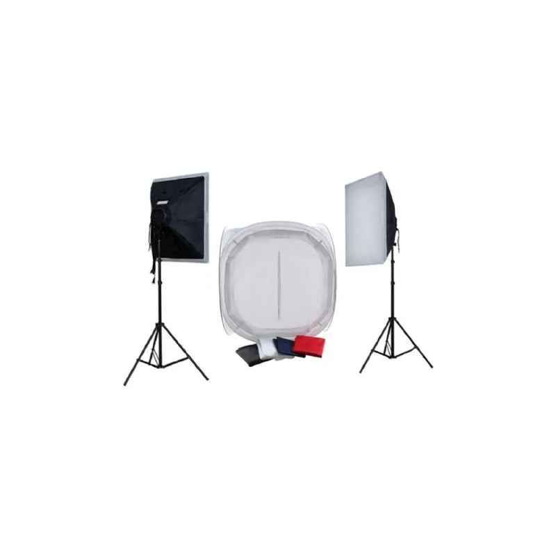 2 x Lamp Holder with Foldable Softbox; 2 x I-2501/B Light Stand (82-250 cm); 2 x Diffuse cloth; 8 x 40W Spiral Lamp; Photo Tent; 4 x Background cloth (White, Black, Red, Blue)