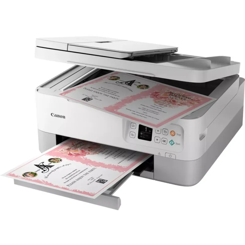 Canon PIXMA TS7451i ir ideāls daudzfunkcionāls mājas printeris, skeneris un kopētājs, kas ļauj drukāt, skenēt un kopēt no jebkuras ierīces. To ir viegli savienot un lietot ar Canon PRINT lietotni, un šis mājas printeris piedāvā vislabāko mobilās drukāšanas pieredzi. Stilīgs, pieejams un viegli lietojams, PIXMA TS7451i var drukāt uz dažādiem medijiem no jūsu datora, planšetdatora vai viedtālruņa, ieskaitot fotopapīru, dzelzs pārneses papīru, magnētisko papīru vai atkārtoti pielīmējamu papīru. ADF tehnoloģija ļauj skenēt un kopēt vairākus lapas vienlaikus, padarot darbu no mājām ātrāku un vieglāku. Kad darbs ir pabeigts, PIXMA TS7451i ir tikpat radošs kā jūs, un tas ir ideāls, lai radoši pavadītu laiku ar bērniem vai atklātu radošo pusi sevī.