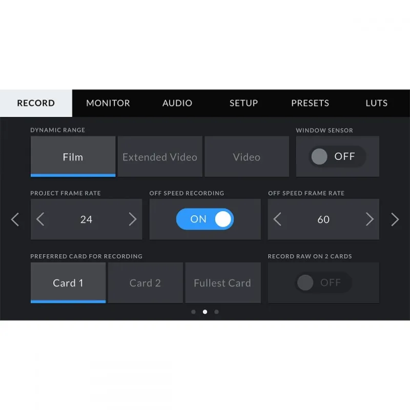 • Supports project frame rates up to 60 fps and off-speed slow motion recording up to 120 fps in 4.6K, 150 fps in 4K DCI and 300 fps in HD Blackmagic RAW.