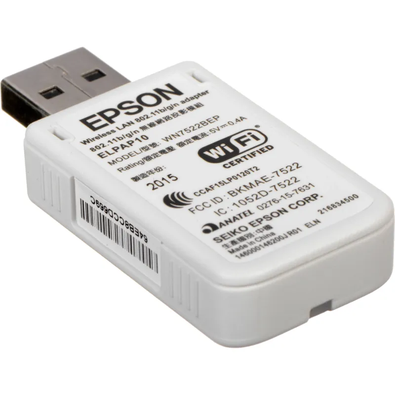 The Epson ELPAP10 Wireless LAN Module allows you to wirelessly project content from a computer or, when used with Epson EasyMP Monitor and Netowrk Projection software, access a network to monitor and control your compatible Epson multimedia projector. It is compliant with 802.11 b/g/n standards and offers compatibility with Mac and Windows operating systems. This module is able to transmit audio as well. The ELPAP10 is compatible with a range of Epson products.