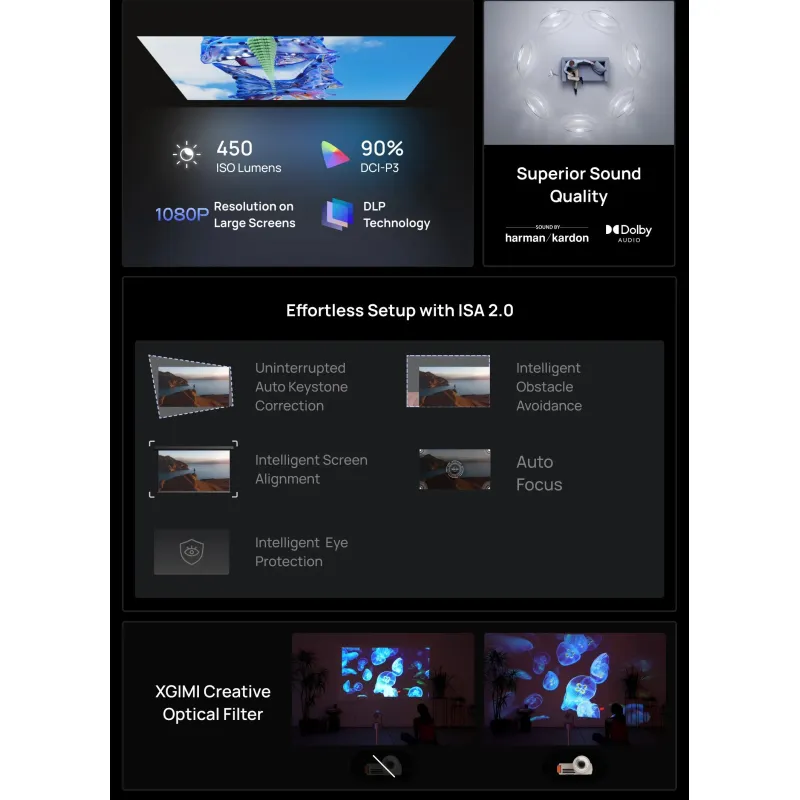 XGIMI sienas funkcija Pārvērtiet sienas par apburošiem attēliem, piemēram, zvaigžņotām debesīm vai zemūdens ainavām.