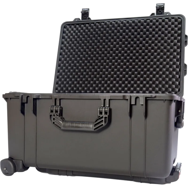 Heavy duty case made from super strong polypropylene. Shock proof, vibration proof, dust proof and rust proof Sealed for moisture protection. Handy pull-out handle and wheels for easy transporting. Laser cut foam inlay that precisely fits three PTC-140 cameras including cables. The HC-650 will fit the RMC-300A and is a regular handheld briefcase model.