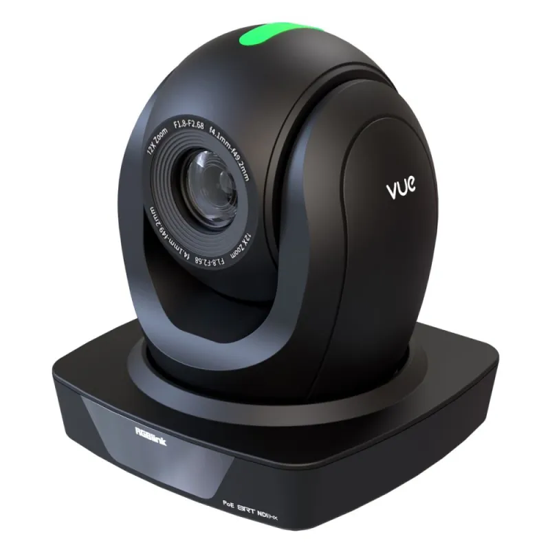 RGBlink VUE NDI PTZ kamerai RGBlink VUE NDI PTZ ir glīts melns dizains un gaismas diodes, tāpēc tā ir ideāli piemērota nelielām izrādēm, dzīviem pasākumiem un izglītības iestādēm. Tā piedāvā ātras, klusas rotācijas un tālummaiņas iespējas, kā arī video izvadīšanu, izmantojot HDMI, 3G-SDI, USB 2.0 vai IP straumēšanu ar izšķirtspēju līdz 1080p60. Kamera izceļas vājā apgaismojumā, nodrošinot augstu attēla kvalitāti un spilgtas krāsas, pateicoties dinamiskai trokšņu samazināšanai.