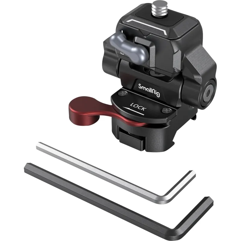 SmallRig Swivel Adjustable Monitor Mount 3601 locks into place via a NATO clamp at one end and attaches to a monitor via a unique SmallRig quick release plate at the other end. It swivels 360° and tilts 150°, and thus stops at any angle. 3601 has a dynamic load capacity of 1.5kg and its damping of pivot is adjustable through spanner. Features rubber pads on the top to prevent scratches and increase friction.