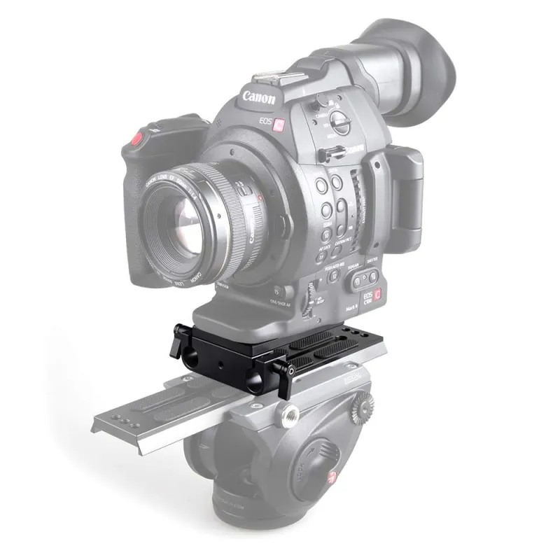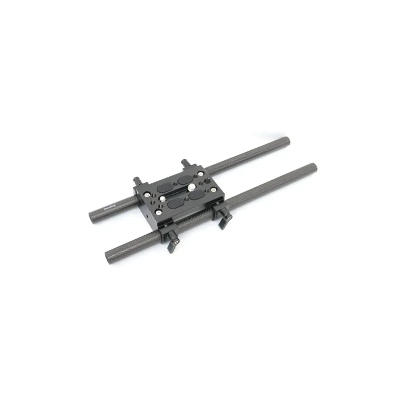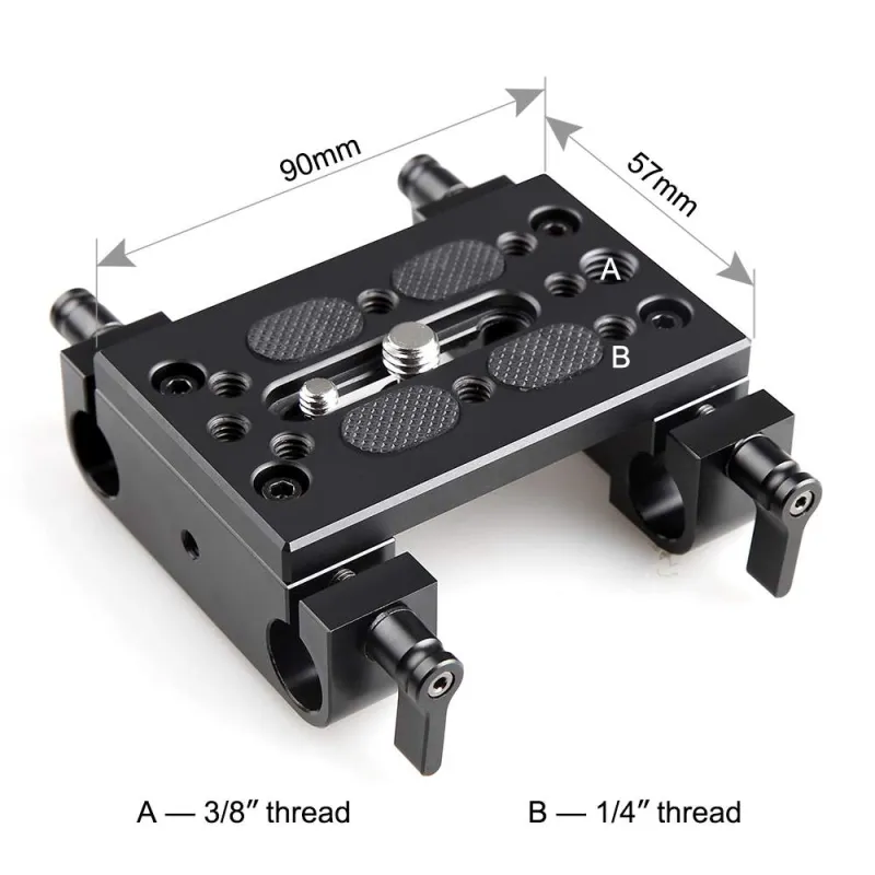 It can be used for direct mounting of camera, cage and tripod etc. There are 15mm LWS bar clamps at the bottom for matte box, lens support and follow focus. Allows the use of standard accessories for the 15mm rod system. Wing nuts are used to conveniently attach or release the rods. It is compact, practical and aesthetic.