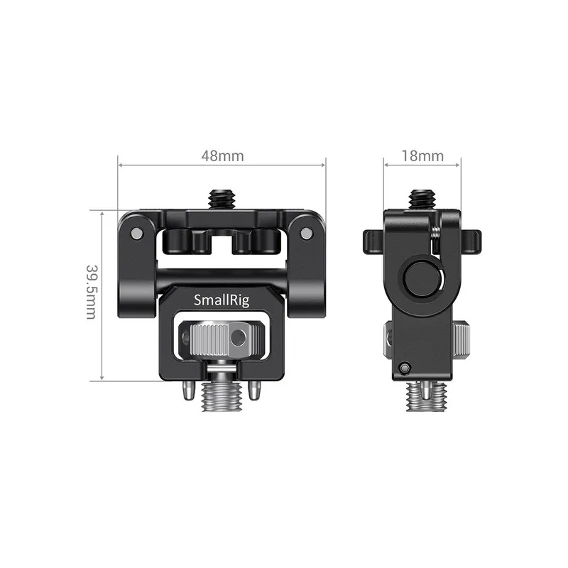 SmallRig Swivel Monitor Mount with Arri Locating Pins 2174 is designed to hold your monitor onto a camera cage or handle via the arri 3/8”-16 screw. It enables to adjust the position of monitor up to 180 degree. The monitor mount is compatible with 5 inch or 7 inch monitor and supports monitor up to 1.5kg. Additional, it features a tool free 1/4”-20 screw to lock monitor on the other end. When not in use, the mount simply folds away for storage.