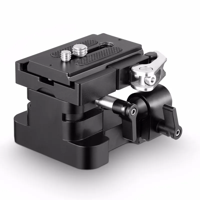 It locks the QR plate via a locking lever for quick release and attachment. The Arca QR plate on the top could be mounted with the camera, and it features convenient detachment and it is very easy to switch to handheld shooting. It could attach 15mm Rod 1053 for follow focus, matte box and Long Lens Support with Dual 15mm Rod Clamp 1087 based on your needs.
