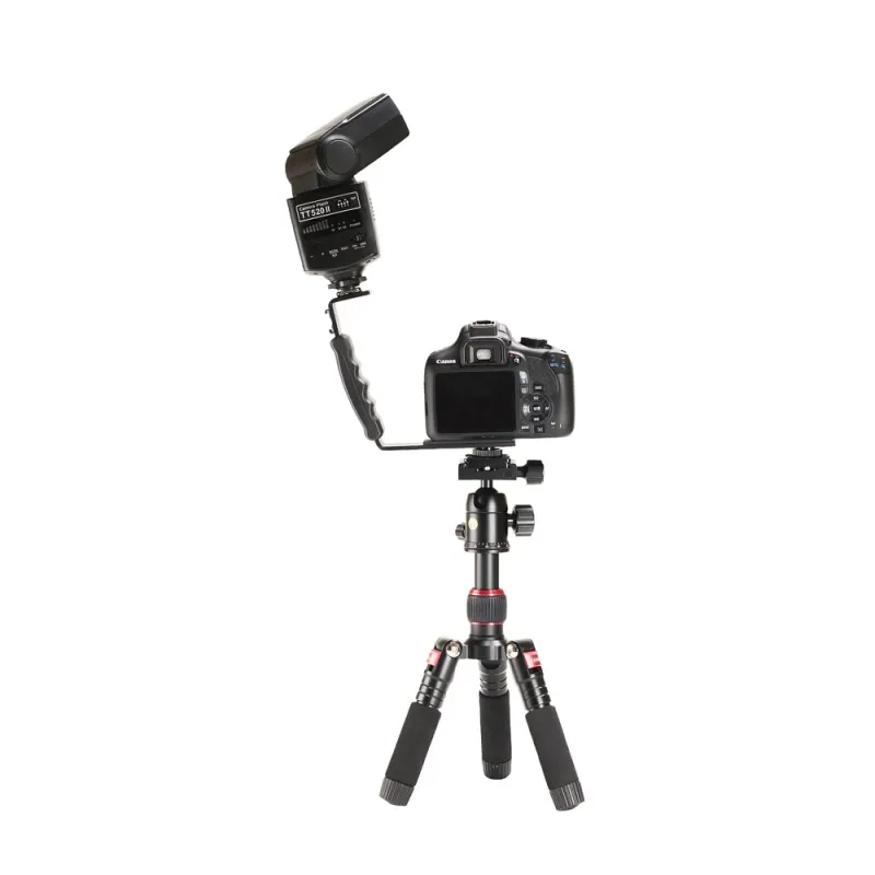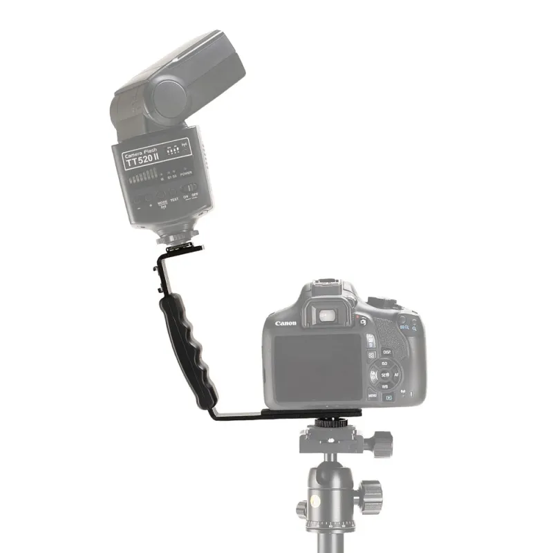 Caruba 2 Hot Shoe Mount L Bracket The Caruba 2 Hot Shoe Mount L-bracket offers a convenient way to flash both horizontally and vertically. This L-bracket has 2 hot shoes, one for shooting with the camera in the standard horizontal position and one for shooting in the vertical position.