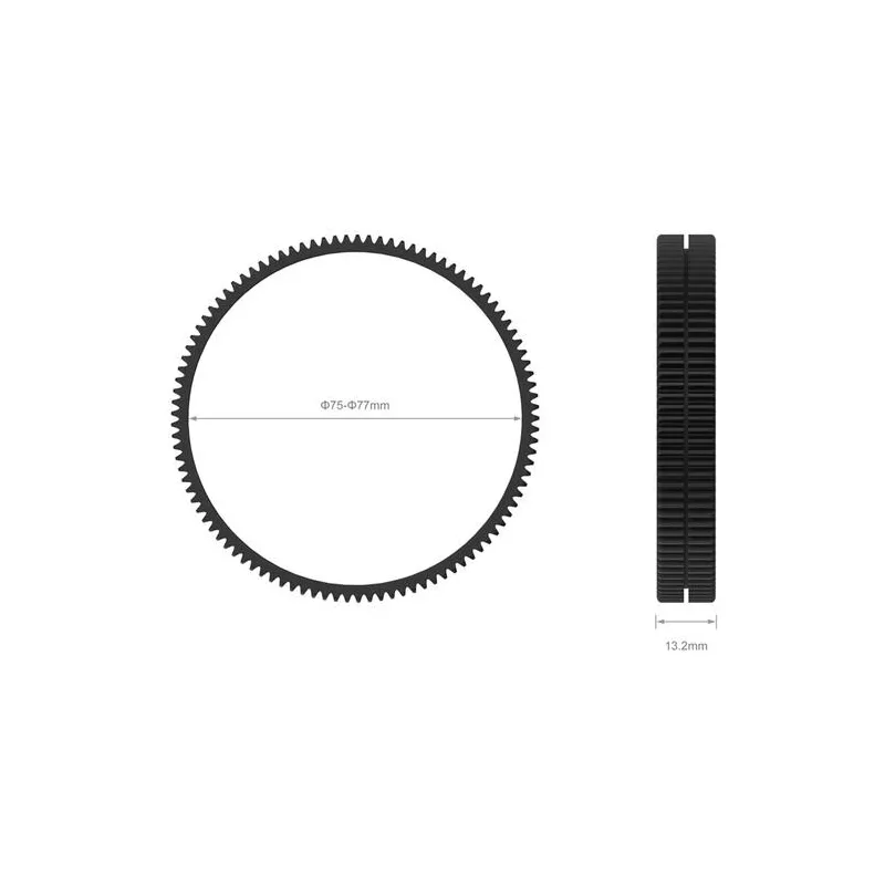 Pievienojiet savam 75–77 mm objektīvam fokusa pārnesuma gredzenu bez papildu atslābuma vai skrūvēm, izmantojot šo SmallRig bezšuvju fokusa zobrata gredzenu. Bezšuvju gredzens ļauj izmantot standarta 0,8 MOD kinozāles uz saderīga objektīva lietošanai ar kino sekošanas fokusiem. Šis 75 līdz 77 mm izmērs der praktiski visiem viena un tā paša ārējā diametra objektīviem, un tas ir savietojams ar dažādiem sekošanas fokusa motoriem, piemēram, SmallRig Mini Follow Focus.