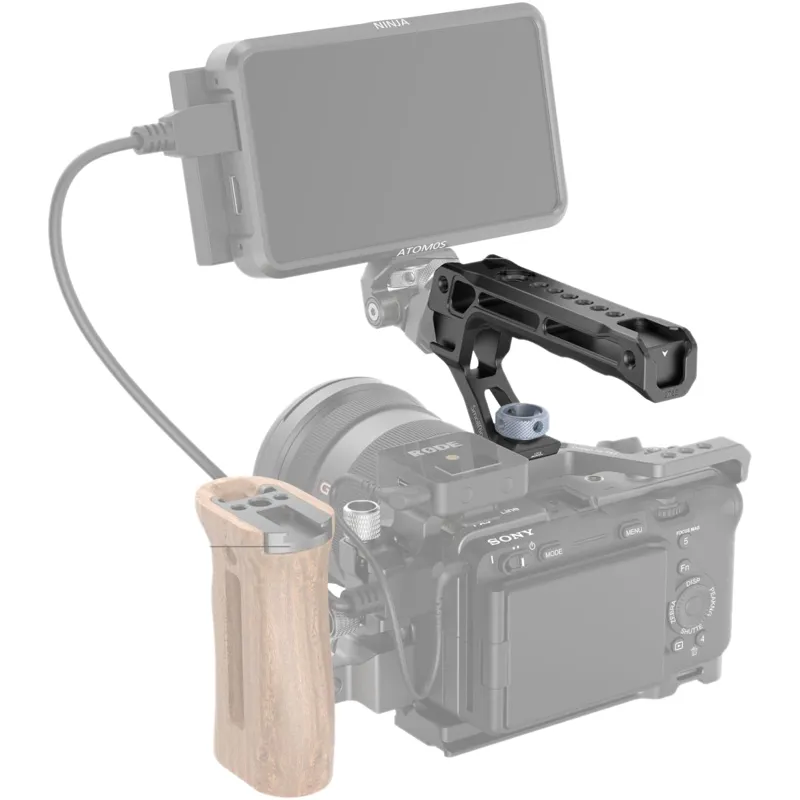 SmallRig ARRI Locating Handle 3765 is designed to facilitate low-angle shot and reduce burdens on arms. The ergonomic handle, featuring anti-slip and anti-freeze silicone, feels comfortable and weighs only 124g because of a hollowed-out structure. It has 3 front cold shoes and 2 rear cold shoes that allow simultaneously mounting microphone, LED light, monitor, and other accessories. ARRI 3/8" -16 locating holes support Monitor Mount 2903, 2348 to attach monitors; 1/4 "-20 threaded holes support Magic Arm 2070 for monitors and Remote Control 2924 for recording. An Allen Wrench helps tighten the locking screw, making it easy to assemble and disassemble.