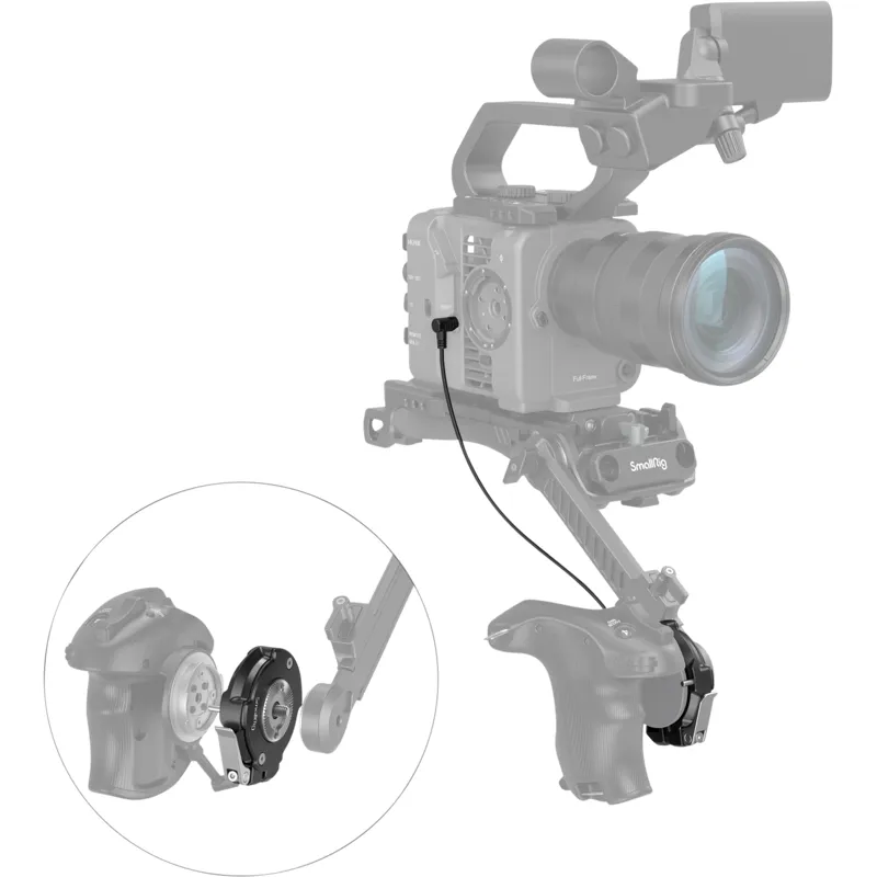 SmallRig Handgrip Rosette Adapter for SONY FX6 3403 allows repositioning the original SONY FX6 handle. It quickly locks the grip with the cam lever and does not obstruct its rotation. The built-in anti-drop design makes it safe and stable; a locking sign ensures correct installation. In addition, an attached M6 screw works with an optional Arri Rosette Adapter to mount the handle onto the stabilizer. When using shoulder rigs, you can use the adapter to reposition the handle via optional Extension Arm 1879. The package also includes LANC Extension Cable 3404, when connects the camera to the handle, enables the use of the trigger of the original handle.