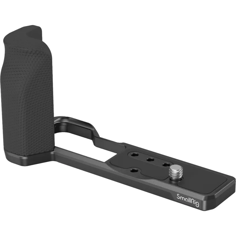 The handle also comes with 1/4"-20 threaded holes at the bottom to attach quick-release plate, and strap holes in the bottom plate for SmallRig Hand Strap 2398.