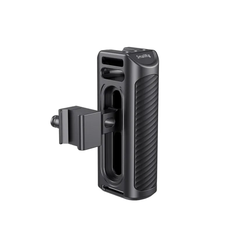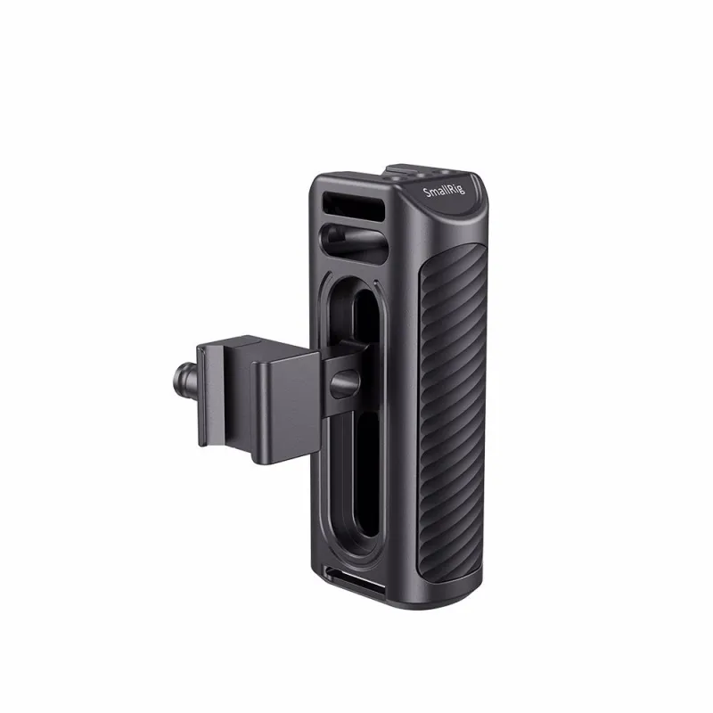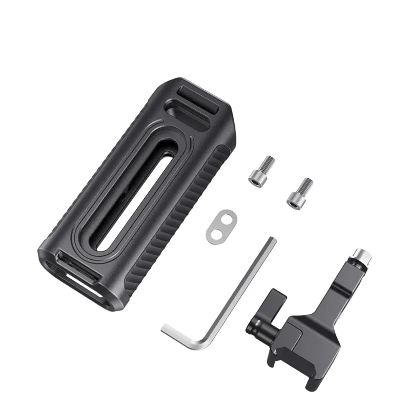 SmallRig Aluminum NATO Side Handle HSN2427 is designed to provide a comfortable handheld shooting for cameramen. A built-in hex on the bottom can be used to adjust the handle up and down based on your needs. If you want to use the handle on the other side of the cage, use the hex to take off the connection metal part of the handle and change the direction. It is locked via NATO clamp to make your setup quick release and fits any cage featuring NATO rail on the side. It comes with one cold shoe and three 1/4”-20 thread holes allow for mounting accessories. It weighs 237g only and features an aluminum body with anti-slip silicone gel coverings to provide a comfortable and lightweight handheld shooting. Also this handle can be used with a hand strap for more security.