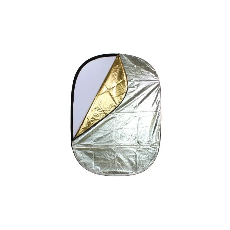 The Linkstar FR-140190B 5 in 1 Reflector is a standard diffuse reflector supplied with a removable cover. This removable, zip up cover is reversible and equipped with 4 different colours: white, gold, silver and black. The reflector is 140 cm wide, 190 cm long and can be folded and packed away in the supplied carry bag.