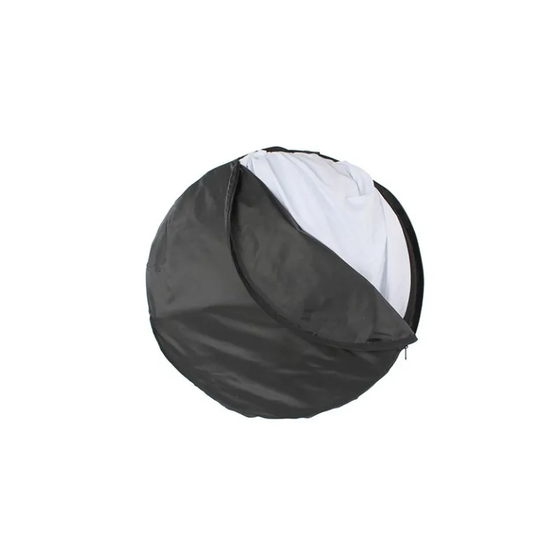 Salokāms atstarotājs ar rāvējslēdzēju un 5 dažādām virsmām — baltu, melnu, sudraba, zelta, izkliedējošu. Salokāms līdz 67cm diametrā, izlaistā veidā 140x190cm.