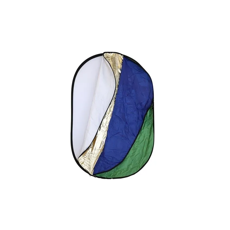 The Falcon Eyes RRK7-4066SLG 7 in 1 Reflector is a standard diffuse reflector supplied with a removable cover. This removable, zip up cover is reversible and equipped with 6 different colours: white, gold, silver, sunny gold, chroma green and blue.