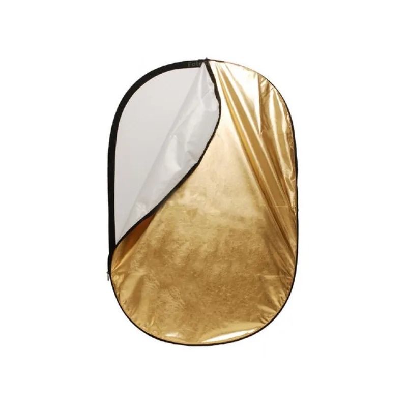 The Falcon Eyes RRK-4066SLG 5 in 1 Reflector is a standard diffuse reflector supplied with a removable cover. This removable, zip up cover is reversible and equipped with 4 different colours: white, gold, silver and sunny gold. The reflector is 102 cm wide, 168 cm long and can be folded and packed away in the supplied carry bag.