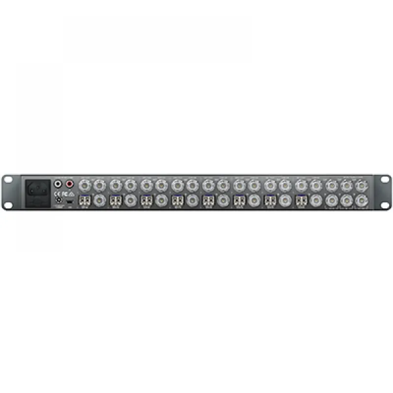 ATEM Camera Converter features high quality SDI and HDMI inputs for connecting professional SDI and consumer HDMI cameras. It includes 1/4″ stereo jack mic/line inputs so external commentary and effects audio can be sent from the camera position. ATEM Studio Converter has 4 bi-directional fiber converters that convert each camera feed from optical fiber to SDI and output balanced analog audio on XLR connectors. Also included is loop program SDI in, plus AES/EBU microphone and headphone loops that let you link multiple ATEM Studio Converters.