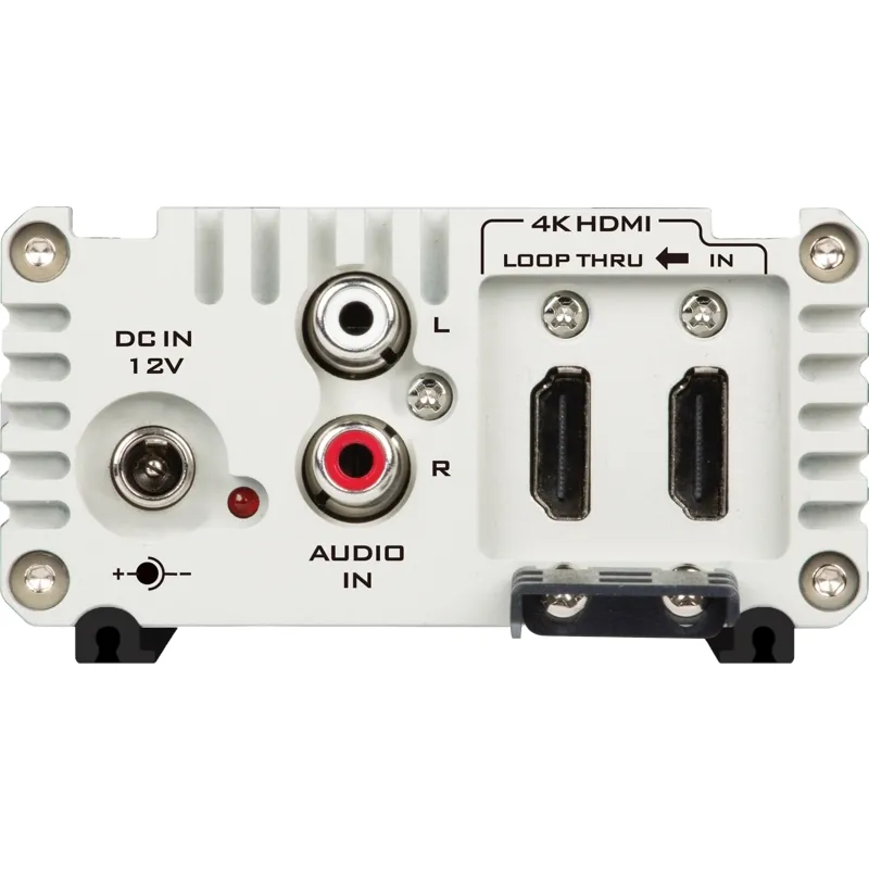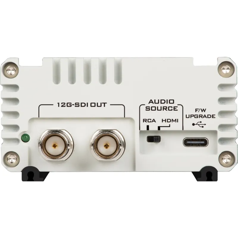 Papildus konvertētajai 12G-SDI izejai ir HDMI cilpas caurvade, lai nosūtītu signālu uz citām ierīcēm jūsu darbplūsmā.