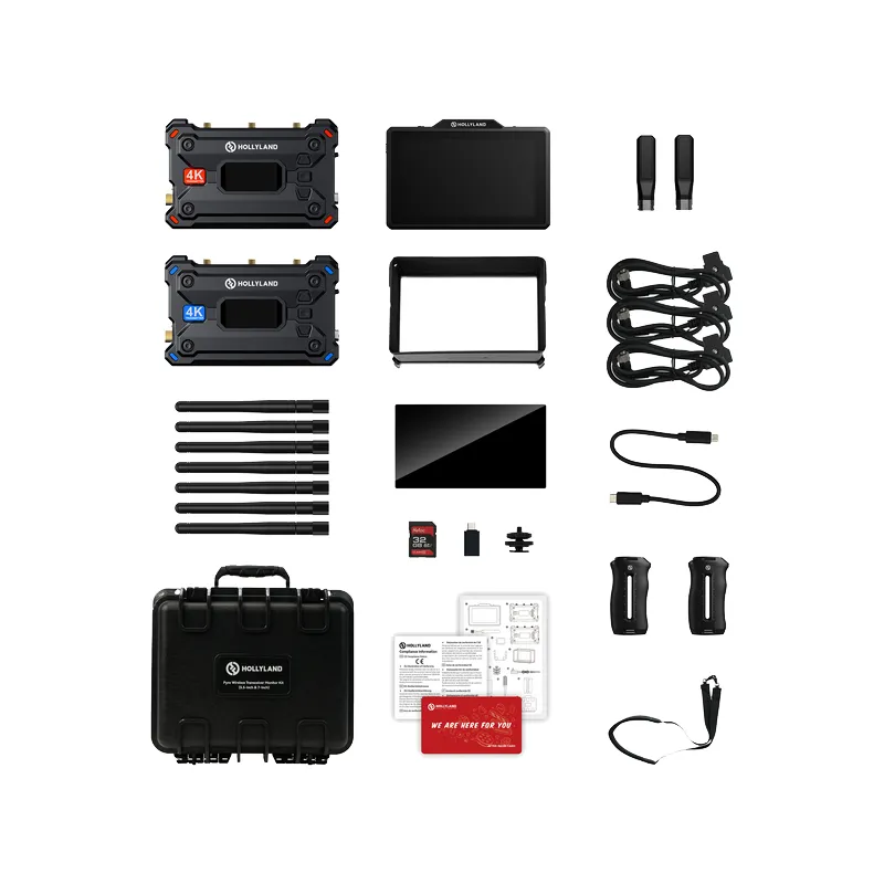 HOLLYLAND PYRO 5 & S VIDEO TRANSMISSION & MONITORING KIT apvieno Pyro 5 bezvadu pārraides monitoru ar Pyro S bezvadu video pārraidītāju un uztvērēju, nodrošinot pilnīgu, profesionālas kvalitātes risinājumu video uzraudzībai un bezvadu pārraidei filmēšanas laukumā. Izstrādāts filmu veidotājiem un ražošanas komandām, tas nodrošina spilgtas bildes ar izcili zemu latentumu.