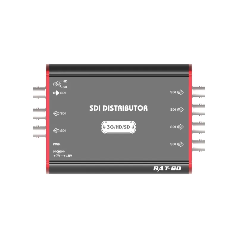 Lumantek 1x6 HD/SD-SDI sadalītājs 1x6 HD/SD-SDI sadala vienu SDI signālu uz sešām SDI ierīcēm vienlaicīgi. Katra izeja ir pārtaktēta, lai nodrošinātu ilgu signāla stiprumu.