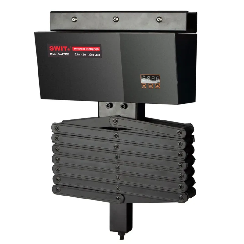 GA-PT20E pantogrāfs ir virsmas atbalsta sistēma, kas paredzēta profesionālām video studijām, ļaujot DMX motorizētu kontroli studijas gaismām ar ātrumu 10cm/s. Tam ir regulējams augstuma diapazons no 0.5m līdz 2m un tas atbalsta maksimālo slodzi 30kg.
