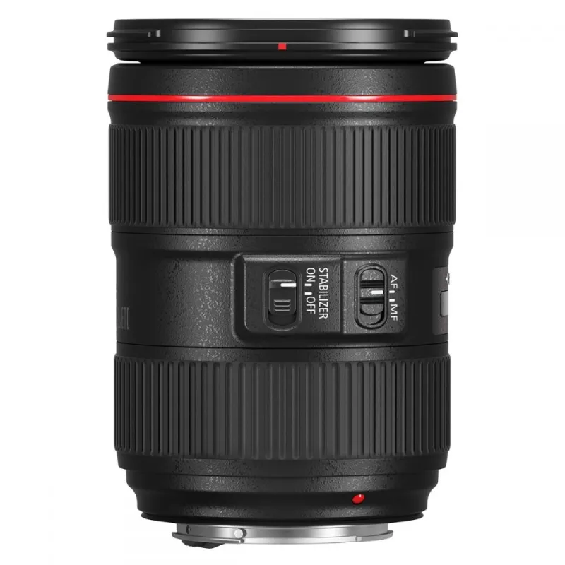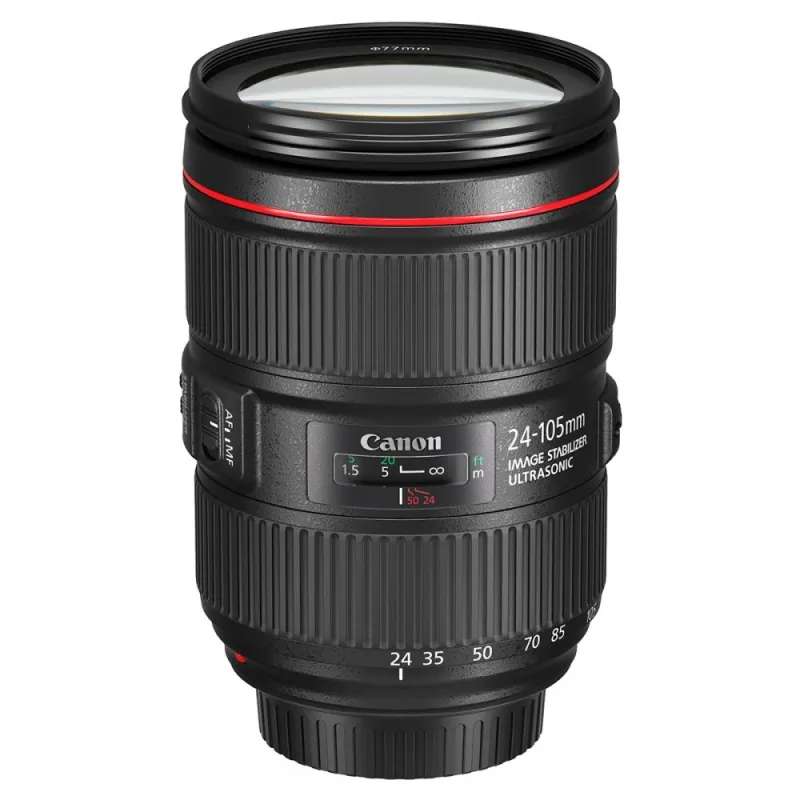 Uzlabots viena objektīva risinājums EF 24–105 mm f/4L IS II USM ir Canon L sērijas tālummaiņa, kas aptver platleņķa līdz īsu telefoto. fokusa attālumi un ar nemainīgu f/4 maksimālo diafragmas atvērumu. Šī populārā objektīva II versijai ir pārveidots optiskais dizains, kas ietver četrus asfēriskus elementus, kas ievērojami samazina kropļojumus un sfēriskās aberācijas visā tālummaiņas diapazonā, nodrošinot lielisku asumu un precīzu objekta atveidi. Atsevišķos elementos ir arī gaisa sfēras pārklājums, kas novērš uzplaiksnījumus un dubultošanos, tādējādi nodrošinot lielāku kontrastu un krāsu precizitāti skarbos apgaismojuma apstākļos.