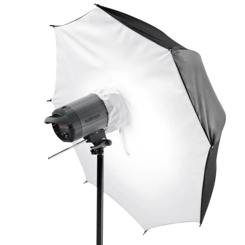 The umbrella softbox is ideal for portrait shots and small group shots. In product photography it is very popular as well. The silver reflex layer ensures an optimal reflection of the light without a soft light characteristic.