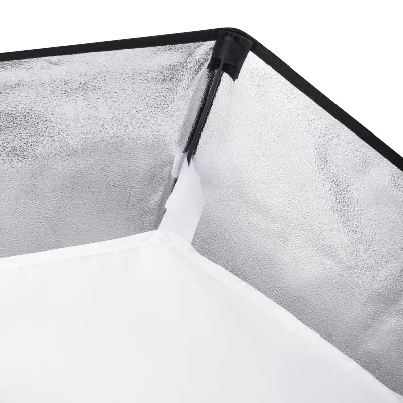 The high-quality Octagon Softbox with 140cm diameter is the ideal assistant for soft and even illumination. Whether beauty, people or glamour photography, whenever you want to achieve the most-possible glare-proof lighting, this Softbox is the right tool. Thanks to its innovative technique, it is easy to assemble in a few steps. The rear diffuser, which is also included, can be used optionally as to make the light softer. The front and rear diffuser are easy to remove by means of Velcro fastener.