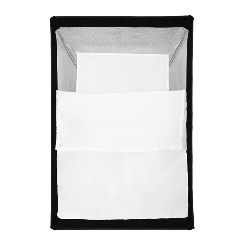 Softboks ir aprīkots ar 2 noņemamiem difuzoriem, iekšējo un ārējo, kas ļauj pielāgot gaismas mīkstumu. Softboks nodrošina vietu piegādātajam režģim.