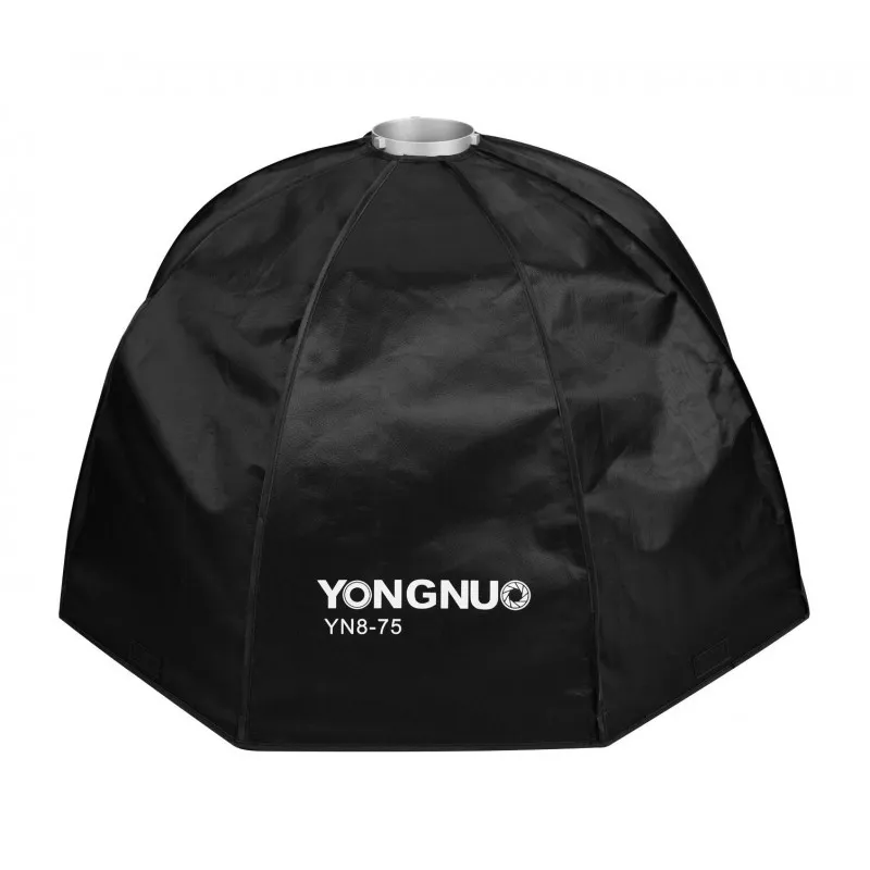 Yongnuo YN8-75 ir augstas kvalitātes 75 cm diametra astoņstūra formas softbox. Softbox ir aprīkots ar populāro Bowens stiprinājumu, kas ir savietojams ar lielāko daļu tirgū pieejamo studijas lampu. Komplektā ietilpst arī divi difūza auduma slāņi un praktiska pārnēsāšanas soma. Acij tīkams apgaismojums Vissvarīgākais softbox uzdevums ir mīkstināt zibspuldzes izstaroto gaismu, novēršot dziļas un skarbas ēnas. Modifikatora iekšējās sienas ir izgatavotas no sudraba pārklājuma, kas darbojas kā atstarotājs, savukārt divi difūzijas materiāla slāņi ir atbildīgi par vienmērīgu gaismas izkliedi. Klasisks stiprinājums un plaša saderība Bowens tipa montāžas gredzens ļauj uzstādīt softbox uz vairuma parasto studijas lampu. Softbox ir, izņemot lietussargu, pamata gaismas modifikators, ko izmanto studijas, portretu, kulinārijas un produktu fotogrāfijās. Specifikācijas modelis: Yongnuo YN8-75 stiprinājums: Bowensa tipa gredzena diametrs softbox: 75 cm softbox dziļums: 45 cm transportēšanas izmēri: 58 x 20 x 7 cm svars: 1,2 kg Saderības studija, zibspuldze, LED lampas un reportieru lampu turētāji ar Bowens stiprinājumu Komplekta saturs 1 x Yongnuo YN8-75 softbox 1 x Bowens montāžas gredzens 8 x metāla stieple 2 x difūzijas audums 1 x softbox un piederumu soma