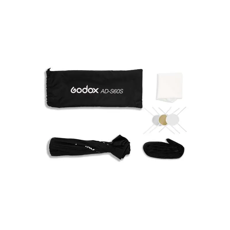 Softbox tiek piegādāts parocīgā futrālī, kas atvieglo transportēšanu un uzglabāšanu. Tam ir standarta Godox Mount bajonetes turētājs, kas ir viegli un ātri piestiprināms pie armatūras