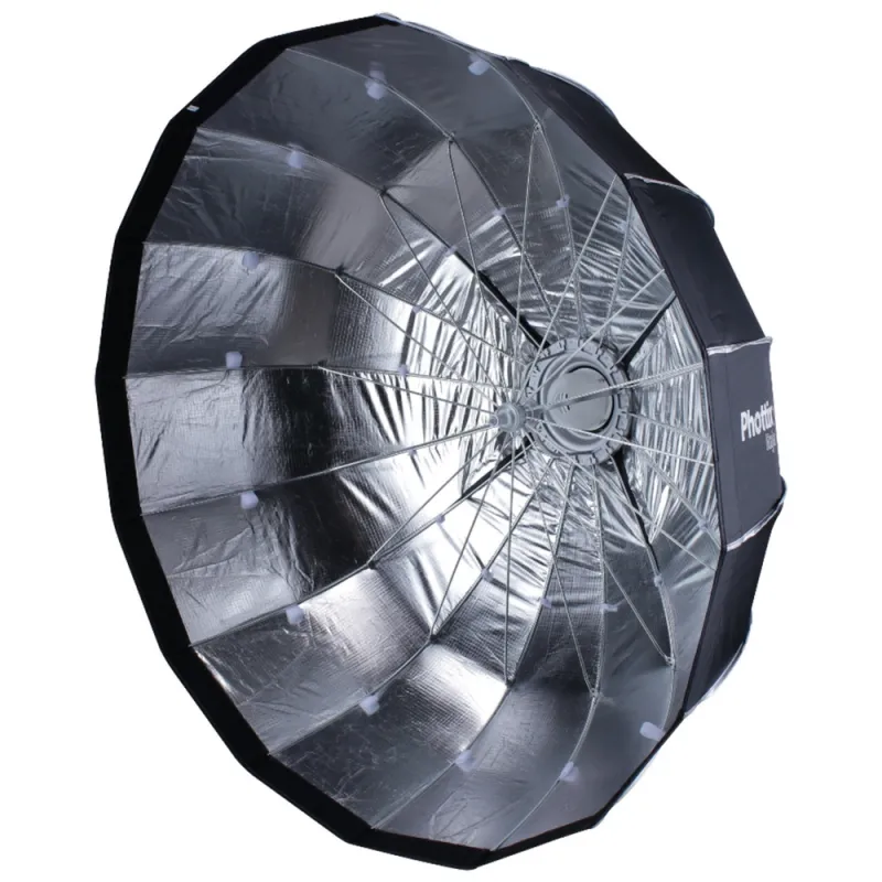 Lietussarga veida uzstādīšana - Raja softboksi ir gatavi lietošanai dažu sekunžu laikā. Vienkārši atveriet to, pievienojiet deflektoru, izkliedētāju un režģi un uzstādiet uz studijas gaismas.