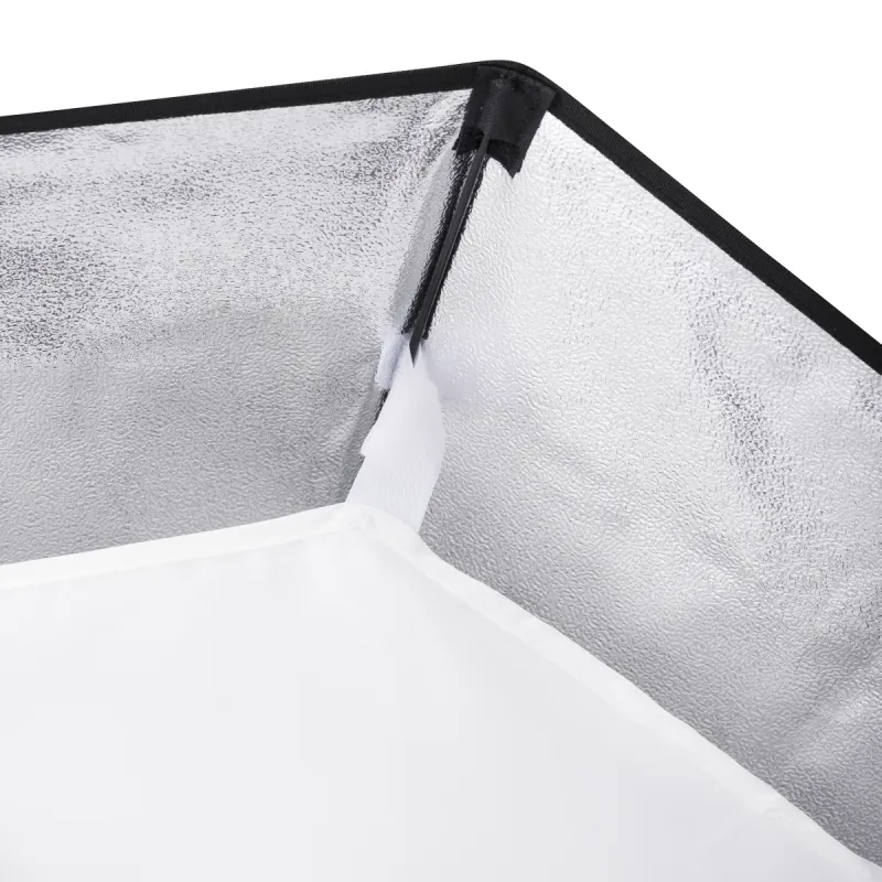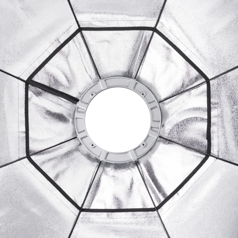 The high-quality Octagon Softbox with 90cm diameter is the ideal assistant for soft and even illumination. Whether people, passport or portrait photography, whenever you want to achieve the most-possible glare-proof lighting, this Softbox is the right tool. Thanks to its innovative technique, it is easy to assemble in a few steps. The rear diffuser, which is also included, can be used optionally as to make the light softer. The front and rear diffuser are easy to remove by means of Velcro fastener.