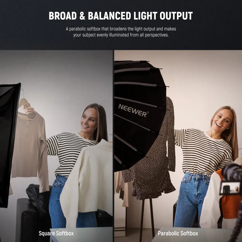 - Nepārspējama Daudzpusība Izstrādāts portretu, produktu fotografēšanai, skaistumam un modes fotosesijām, kāzām, korporatīvajām portretām un citiem fotografēšanas stiliem. Salokāms, lai atvieglotu uzglabāšanu, liela pārvadāšanas soma saglabā softbox pārnēsājamu āra lietošanai ar iekšējo acs kabatu, lai uzglabātu tīklu.
