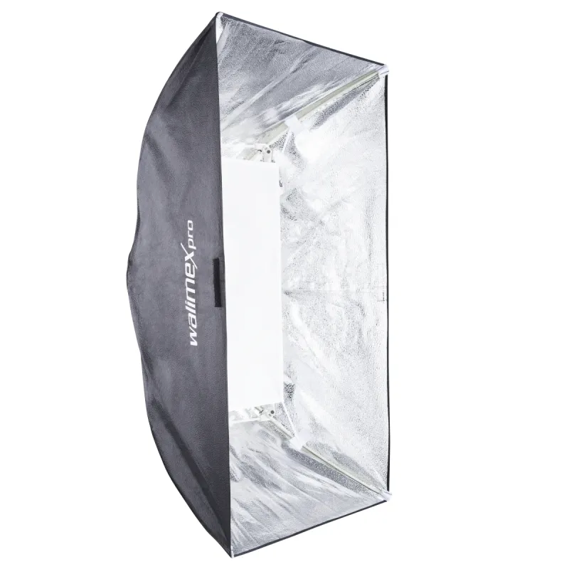 Softboxes generate a soft and uniform illumination without reflections, which makes them indispensable in product and people photography. The foldable walimex pro Softbox is available in three different sizes with adapter and many different connections. The Softbox comes in a convenient transport bag.