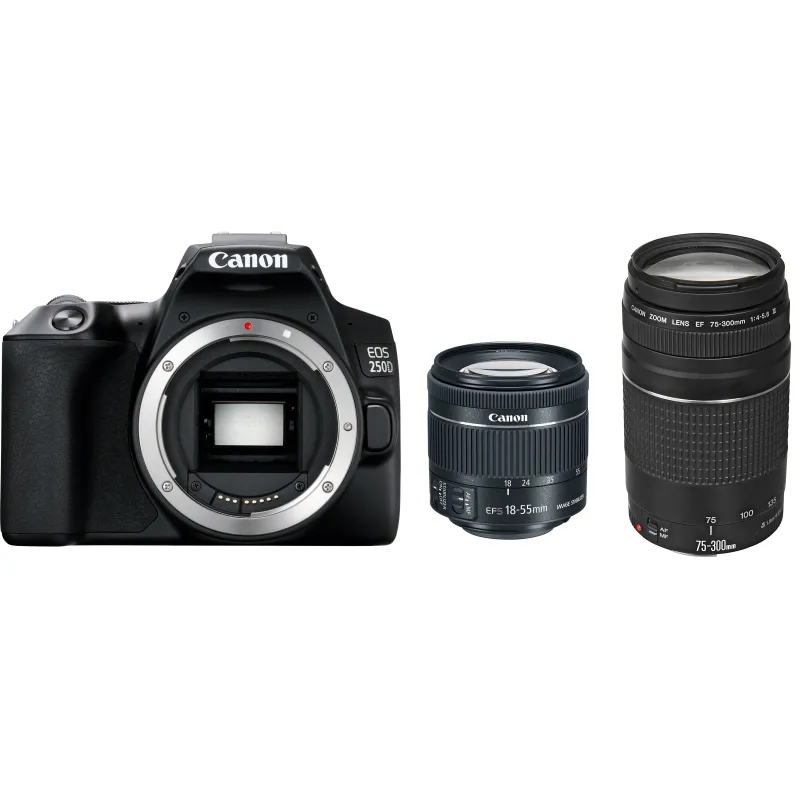Canon EOS 250D DSLR Camera with EF-S 18-55mm & 75-300mm
